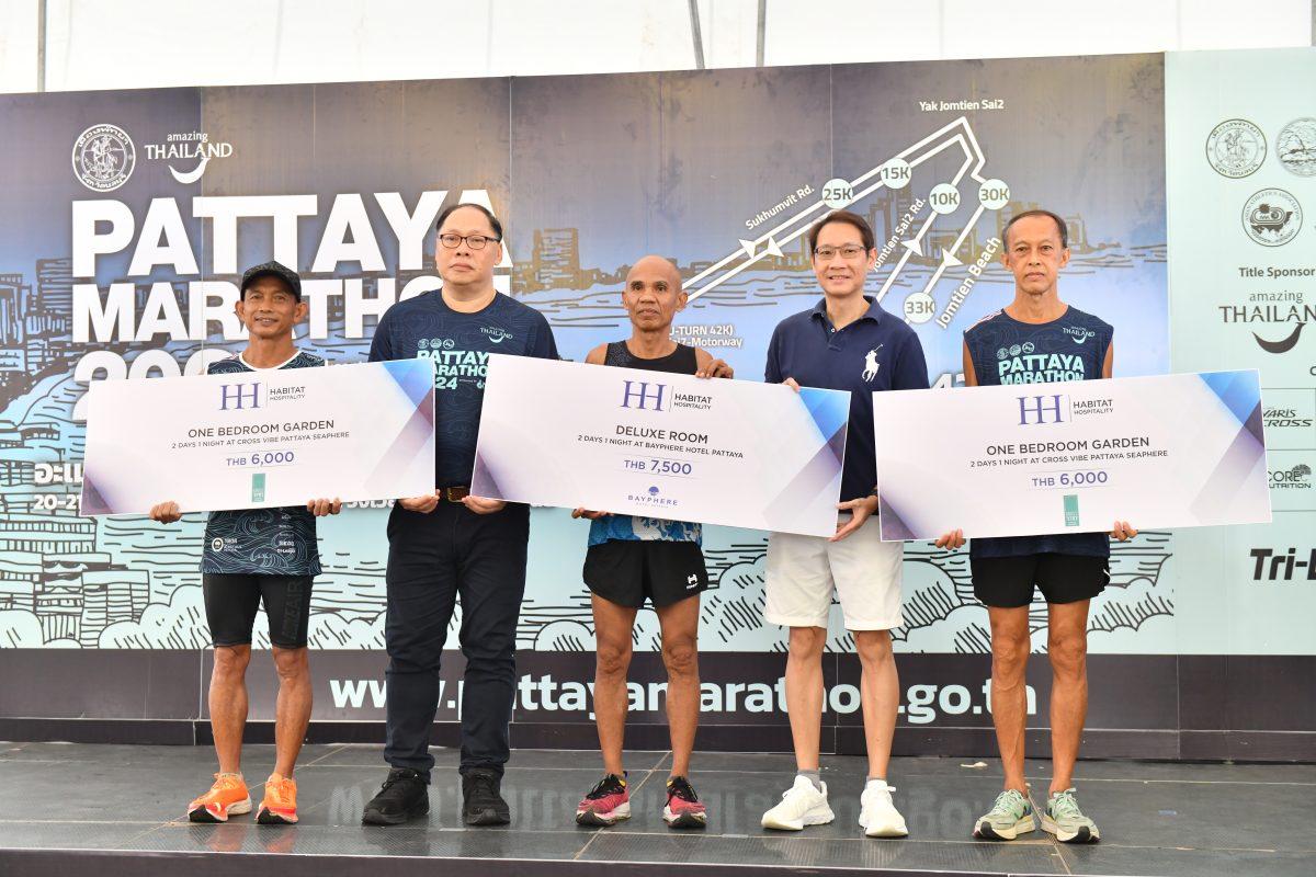 𝗛𝗔𝗕𝗜𝗧𝗔𝗧 𝗛𝗢𝗦𝗣𝗜𝗧𝗔𝗟𝗜𝗧𝗬 พร้อมโรงแรมในเครือฯ อาทิ 𝗕𝗔𝗬𝗣𝗛𝗘𝗥𝗘 𝗛𝗢𝗧𝗘𝗟 𝗣𝗔𝗧𝗧𝗔𝗬𝗔, 𝗖𝗥𝗢𝗦𝗦 𝗣𝗔𝗧𝗧𝗔𝗬𝗔 𝗢𝗖𝗘𝗔𝗡𝗣𝗛𝗘𝗥𝗘 และ 𝗖𝗥𝗢𝗦𝗦 𝗩𝗜𝗕𝗘 𝗣𝗔𝗧𝗧𝗔𝗬𝗔 𝗦𝗘𝗔𝗣𝗛𝗘𝗥𝗘 ร่วมงาน 𝐏𝐚𝐭𝐭𝐚𝐲𝐚 𝐌𝐚𝐫𝐚𝐭𝐡𝐨𝐧 𝟮𝟬𝟮𝟰 มอบบัตรกำนัลห้องพักให้กับนักวิ่งที่ชนะการแข่งขัน มูลค่ากว่า 45,000 บาท โดยมี คุณชนินทร์ วานิชวงศ์ ประธานเจ้าหน้าที่บริหาร บริษัท ฮาบิแทท กรุ๊ป จำกัด เป็นผู้มอบรางวัล และทีมพนักงานโรงแรมฯ ร่วมสร้างสีสันให้งานแจกความสดชื่นด้วยไอศครีมผลไม้สด และของที่ระลึกมากมายให้กับผู้ร่วมงาน ในบรรยากาศที่เต็มไปด้วยความครึกครื้นสนุกสนาน